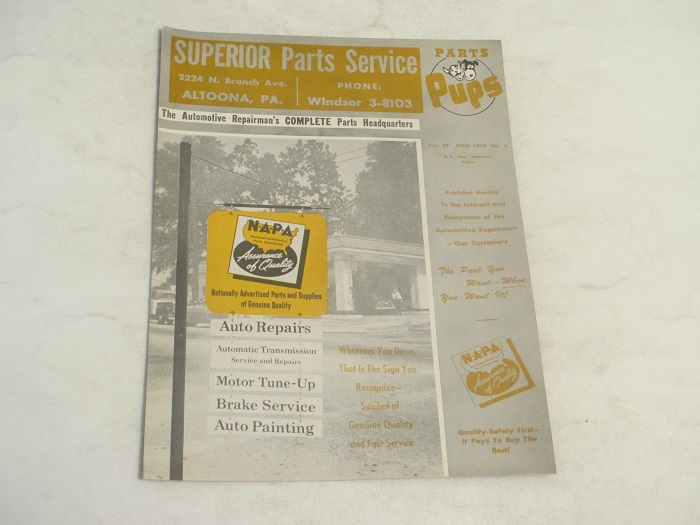 napa parts and pups magazine 6/1960- cover, auto repair services.