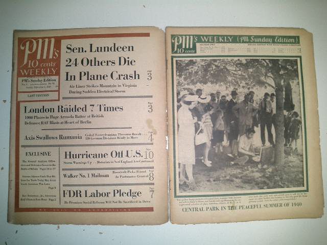 PM Daily was “New York’s Highbrow Tabloid” - one of the most innovative papers of its day – started in 1940 by the legendary Ralph Ingersoll, the name actually stood for Photographic Material. Definitely left-of-center, it was profoundly anti-Hitler and featured many photos and high quality maps to make its point without much subtlety. It took no advertising and featured many human interest stories, especially of New York, and sharp sports writing. The newspaper ceased publication in 1948.
