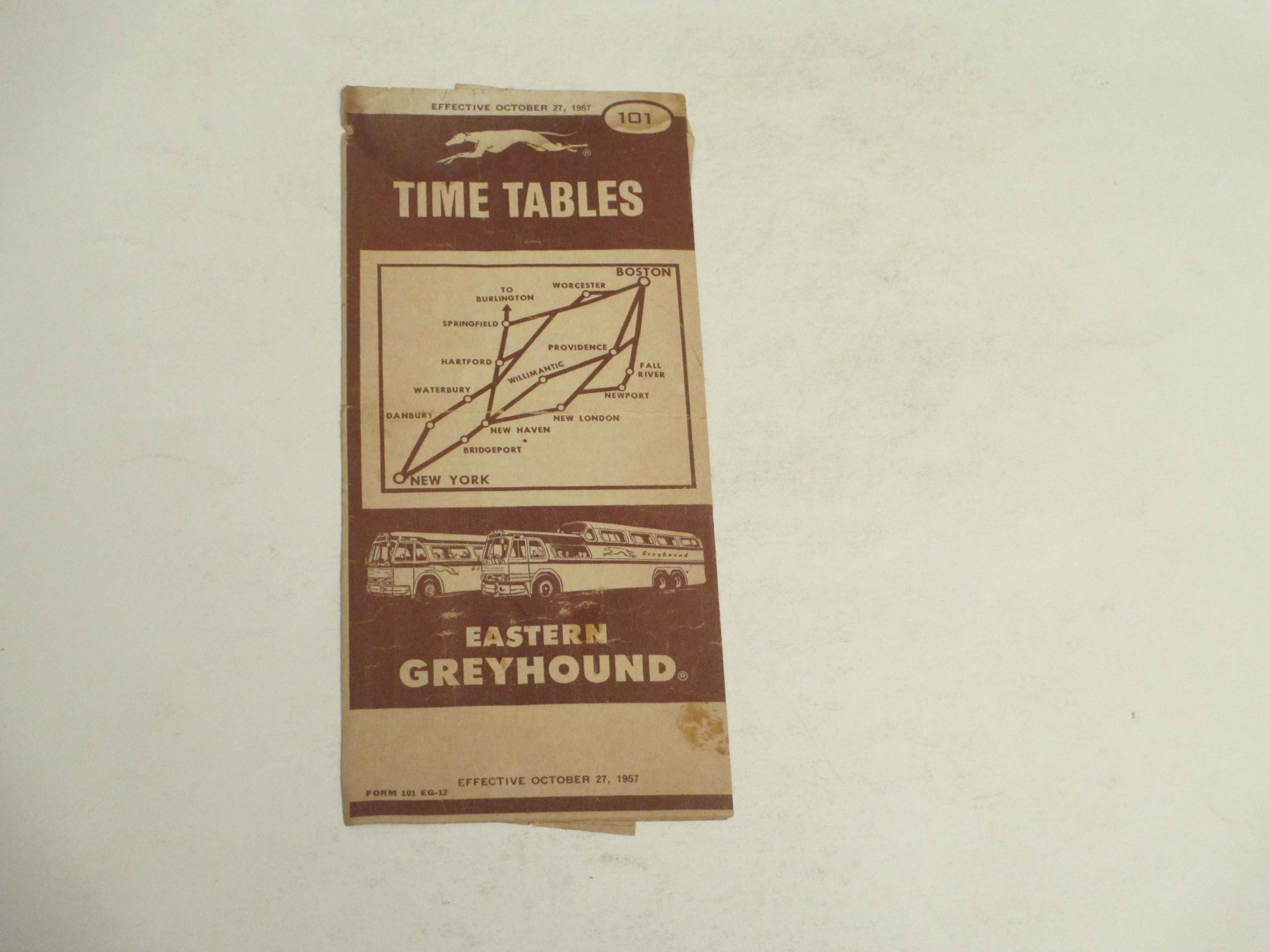 Greyhound Bus Timetable 10/27/57 New York to Boston