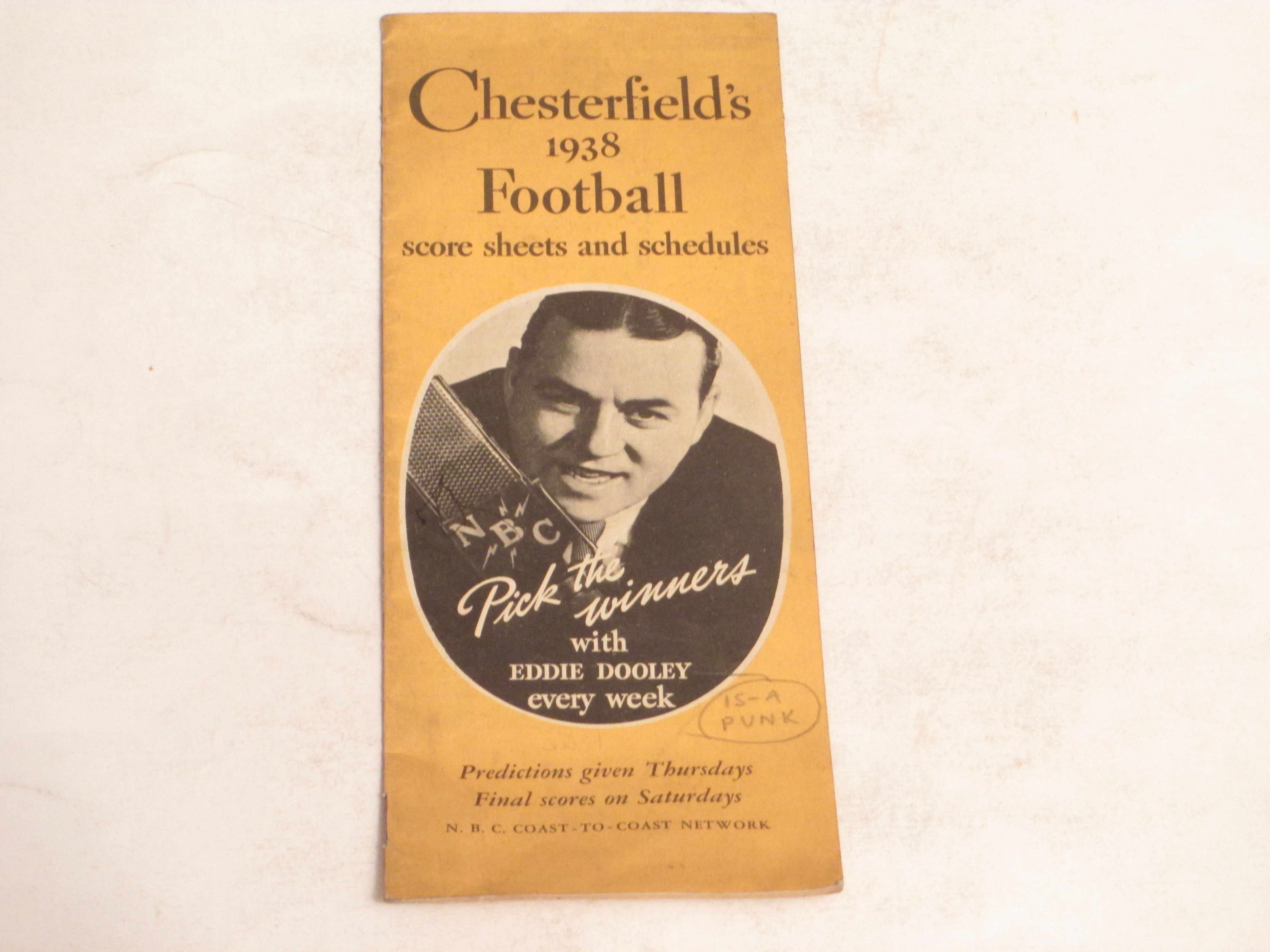 chesterfield's cigarettes 1938 football score sheets and schedules.