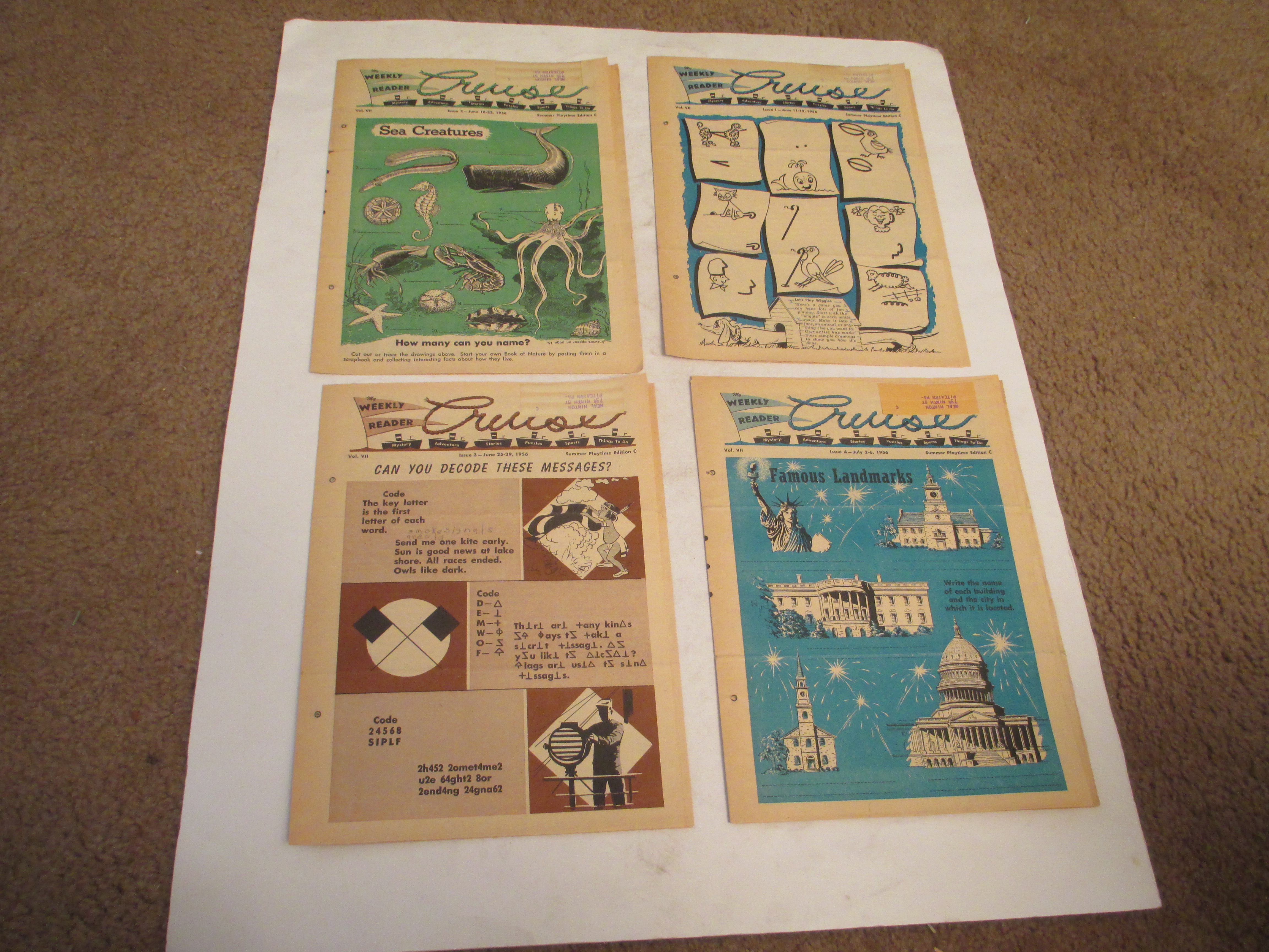my weekly reader newspaper summer/sept/oct/nov 1956.