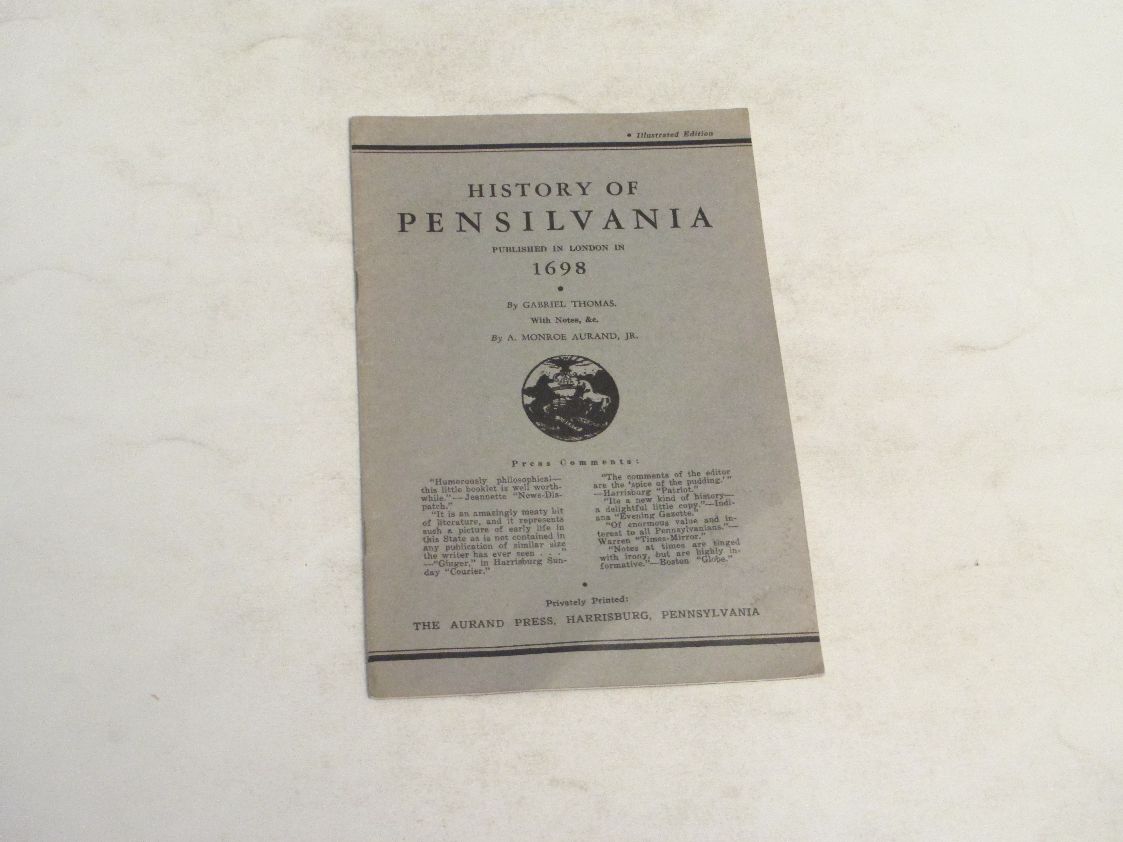history of Pennsylvania in America- a 1935 reprint of an article first in print at 1698.