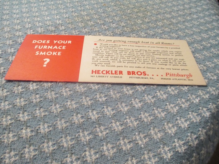 heckler brothers- Pittsburgh,pa- furnace sales/service fold out
