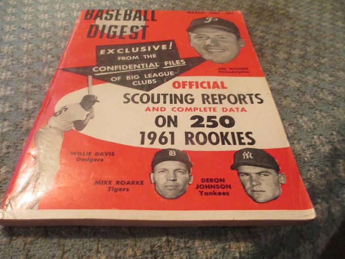 baseball digest magazine 3/1961. cover, willie davis, scouting reports