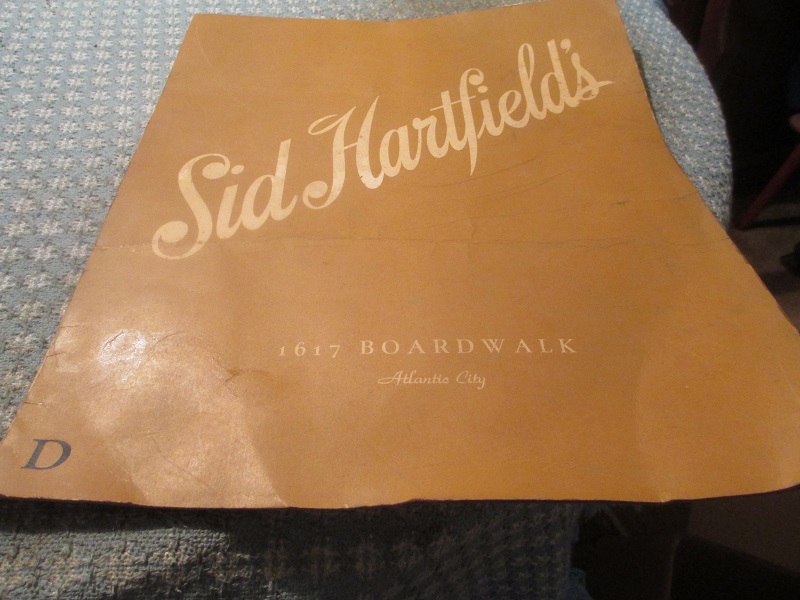 sid hartfield's 1950's dinner menu- atlantic city, nj