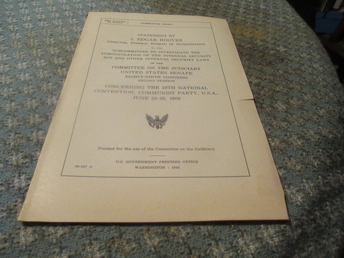 j. edgar hoover 1966 statement before the u.s. senate judiciary re the 18th convention of the usa communist party.