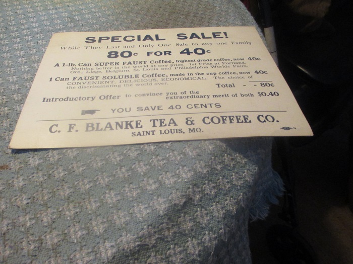 C.F. Blanke Tea & Coffee Co. 1910's Cardboard Ad