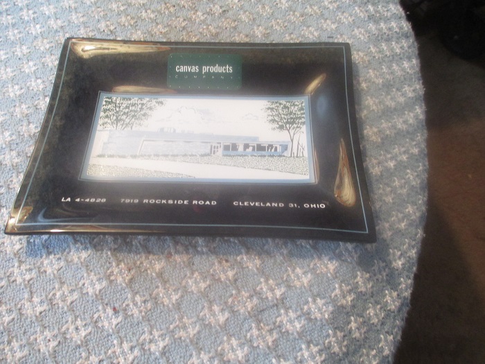 Glass Ashtray logo Canvas Products, Cleveland, Ohio