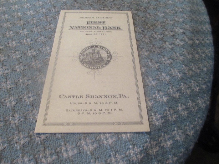 First National Bank-Castle Shannon,Pa. 1931 Statement