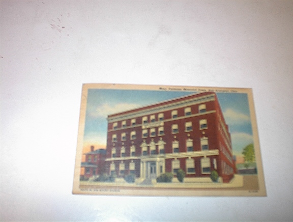 USED 1961 Mary Patterson Memorial Home,Liverpool,OHIO .Condition is GOOD has writing in message area,mailing stamp,canceled stamp, also light discoloring