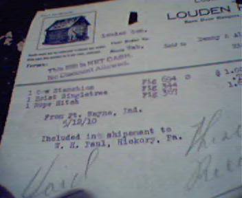 Louden Hay Tools Bill Head from 5/14/10