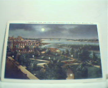 Confederate Park and Post Office and Mississippi River by Moonlight in Memphis Tennessee!-Says Color Linen Post Card, Some Wear, Not Used & Not Postmarked- , Overall Good Condition! lt